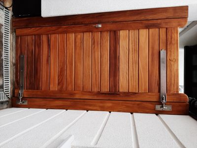 Proud to present one of the most beautifull sample of hardwood gate /Iroko gate supplied and installed by us with stainless steel ironmongery and lock for easy and secure access.